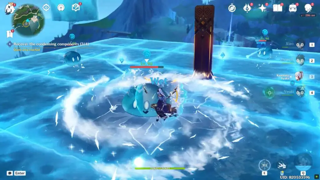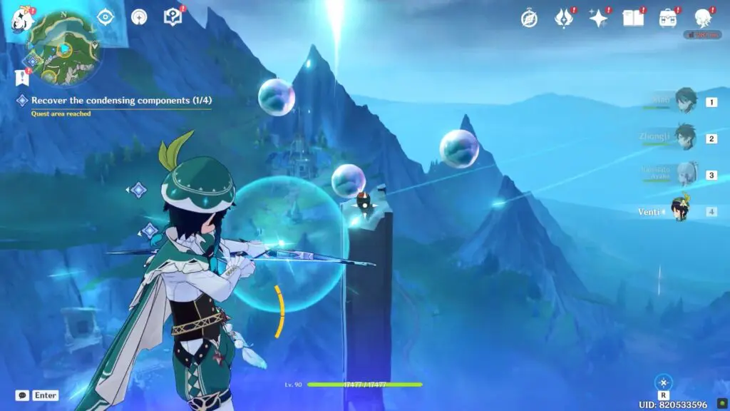 In the final challenge, following the bubble-popping phase, you’ll engage in combat against a cluster of Hydro-themed enemies. Continue with this process until you gain entry to the purple water structure, where you can obtain the Condensing Component.