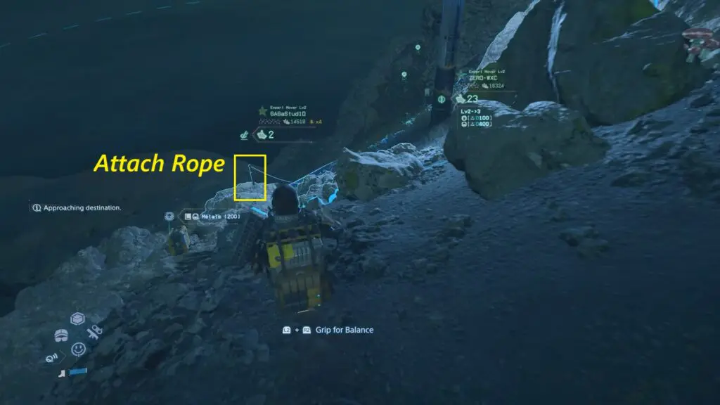 Continue following the path downhill. As you go further, watch for an Anchor point on the cliff. Attach the rope to descend once more. Finally, look for another ladder on the ground and walk on it to reach the cargo’s location.