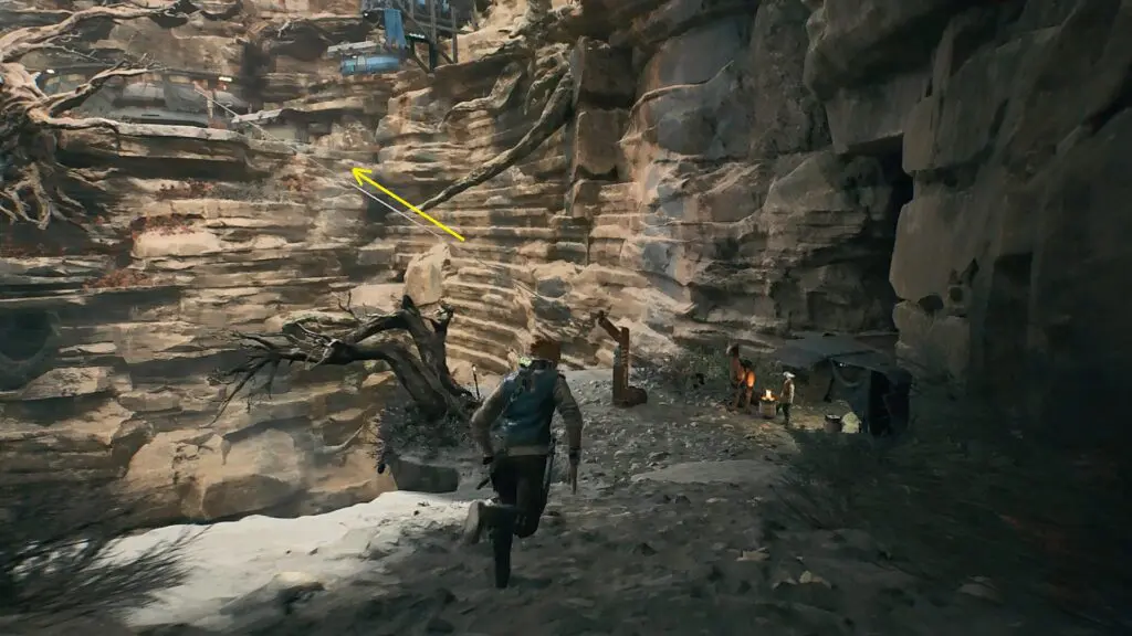 From Rambler’s Reach Outpost meditation point, go straight ahead until you reach Pyloon’s Saloon. Now go up the slope near Pyloon’s Saloon main entrance as shown in the second picture below. Proceed ahead then go right and take the zipline at the end as shown in the third picture below.