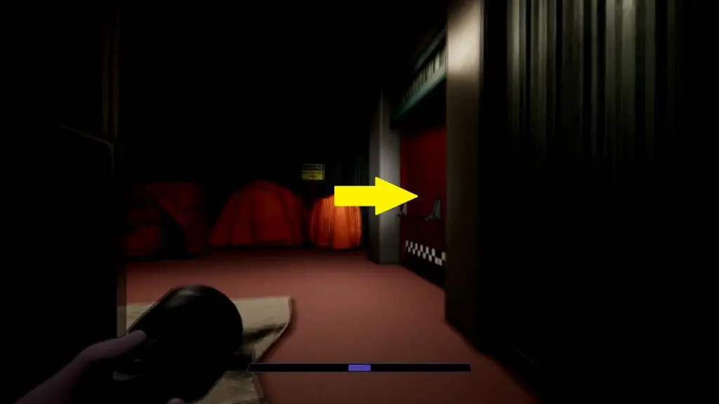 At the end of the hallway, you will find a red door at the location shown in the pictures below. Enter the red door to reach the rehearsal room.