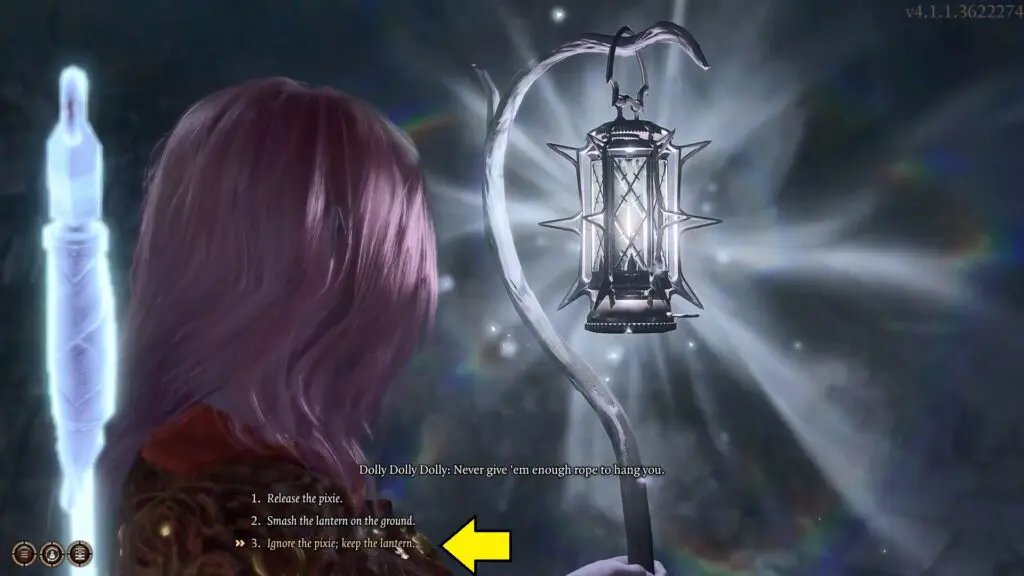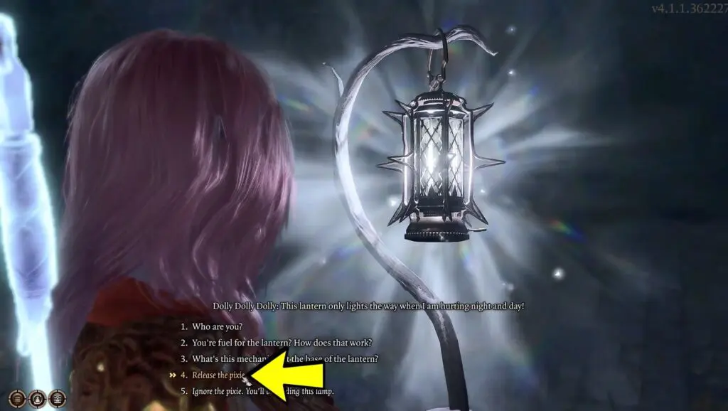 You will acquire Moonlantern during Jaheira’s side quest. After you inspect the Moonlantern, you’ll learn that there’s a foulmouthed pixie in there, called Dolly Dolly Dolly. Here you have the option to release the pixie or keep the lamp.