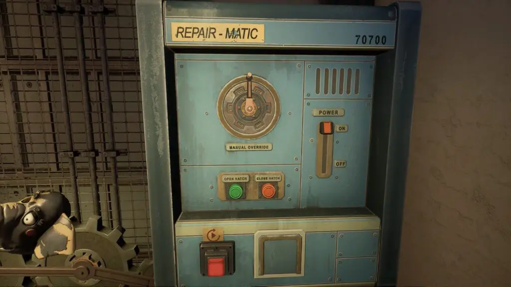 Repairmatic Box is already open, but if not, open it manually. Press the Square Red Button at the bottom.