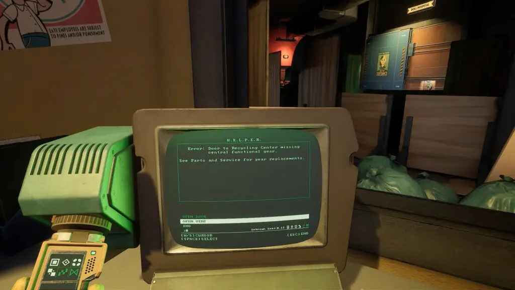 Next, return to the terminal you used earlier. There’s now a new option called “Open Door.” Press it, and the exit door will open.