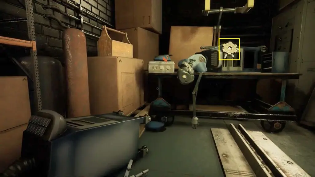 There’s a small ramp — go up the ramp to reach a tiny room on the other side. In this room, you will find a cog.