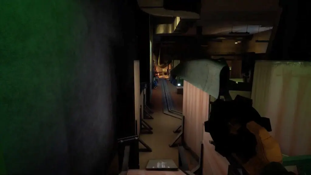 After finishing the task with the recycling cubes, it’s time to repair the Doll Hospital door. Walk up the stairs at the end of the path and use the data drive to open the locked door. Inside, you will find Dollie moving on a fixed track path. To avoid getting caught, you can hide along the path, especially in corners and safe spots where the track can’t reach. These are great places to stop and wait until Dollie passes by.