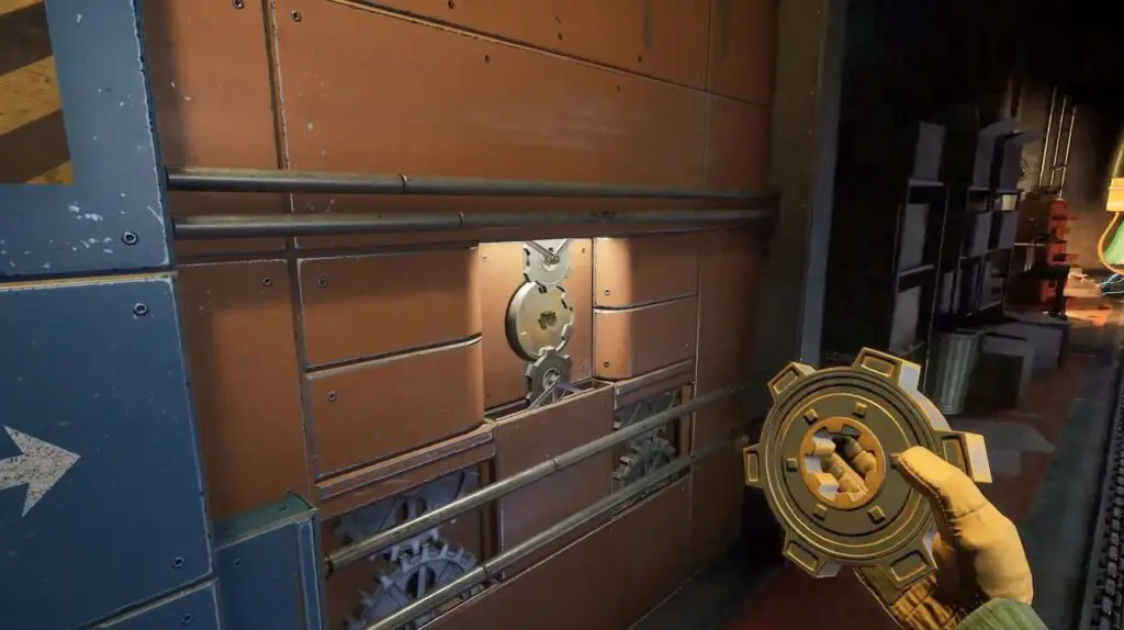 There’s a sealed door where you need to install this cog. After exiting the vent, wait for Dollie to rush past, then follow her again to a safe spot close to the door. When it’s safe, insert the cog into the sealed door.
