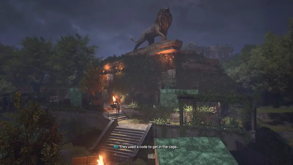 To save Connors, you’ll have to discover the code to unlock the cage where he’s trapped and acquire the key to free him from Handcuffs. The game will provide you with two markers to follow at this stage. One is located to your right in the building with a lion statue on top, while the other is on the left in a nearby house with a crocodile statue.