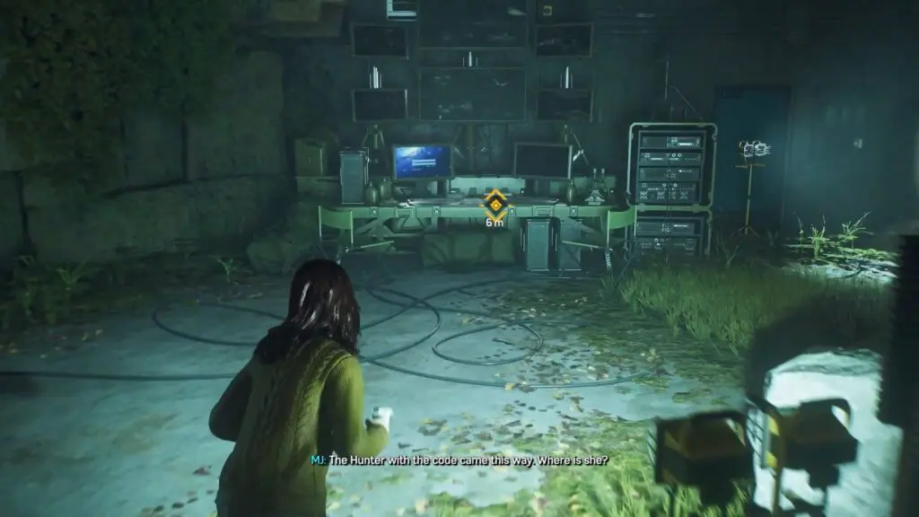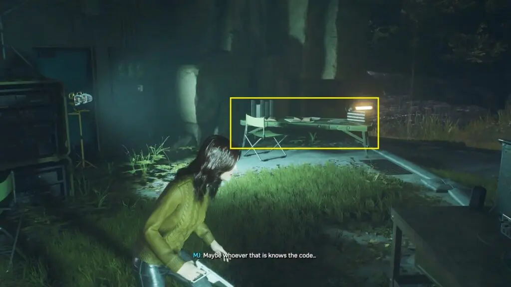 Enter the building and check the note near the computer. Suddenly, a guard attacks MJ and a voice speaks over the radio.