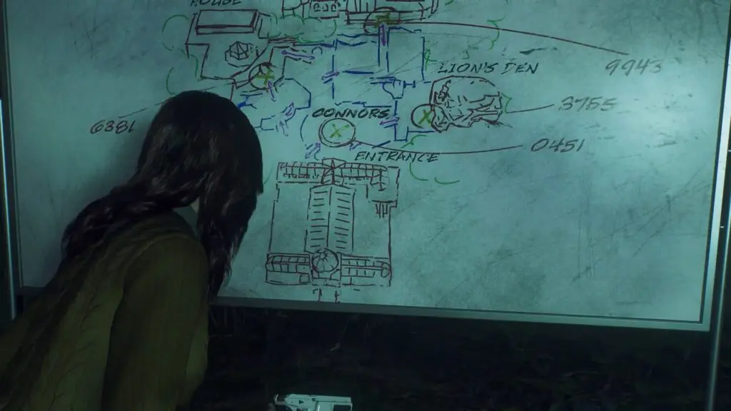 Once you talk over the radio, you’ll be informed that the code can be found on the whiteboard hidden beneath camouflage cloth. Remove the cloth to discover that the cage’s code is 0451.