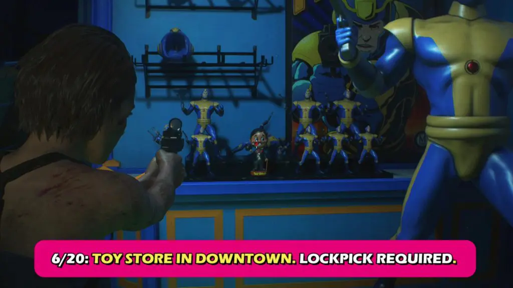 The Toy Uncle Shop in Downtown can be accessed only after you get the lockpick. The Bobblehead is among the Mega Man action figures.