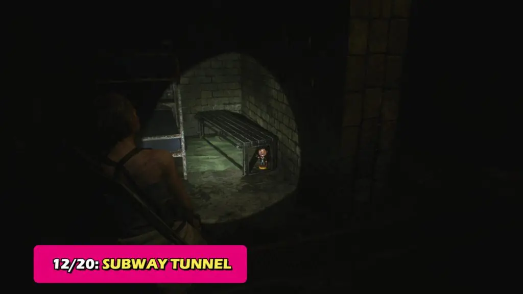 After Carlos’s Police Station portion is over, you’ll gain control of Jill and you’ll have to find a way above the ground from the Subway Tunnels. Here you’ll find this bobblehead below one of the bunk beds.