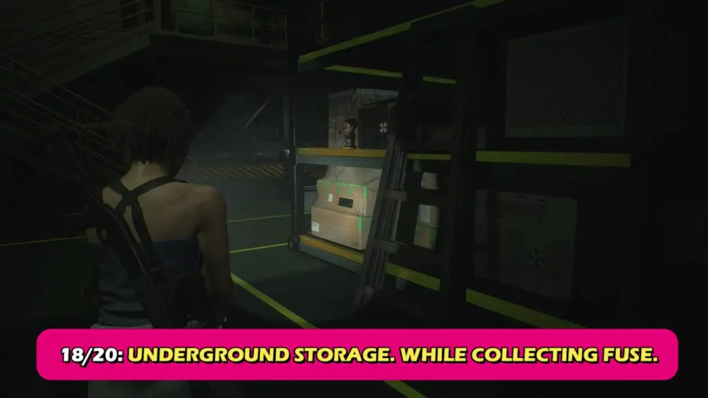 After collecting the first fuse, you’ll have to squeeze between a couple of shelves. The Bobblehead is right after that.