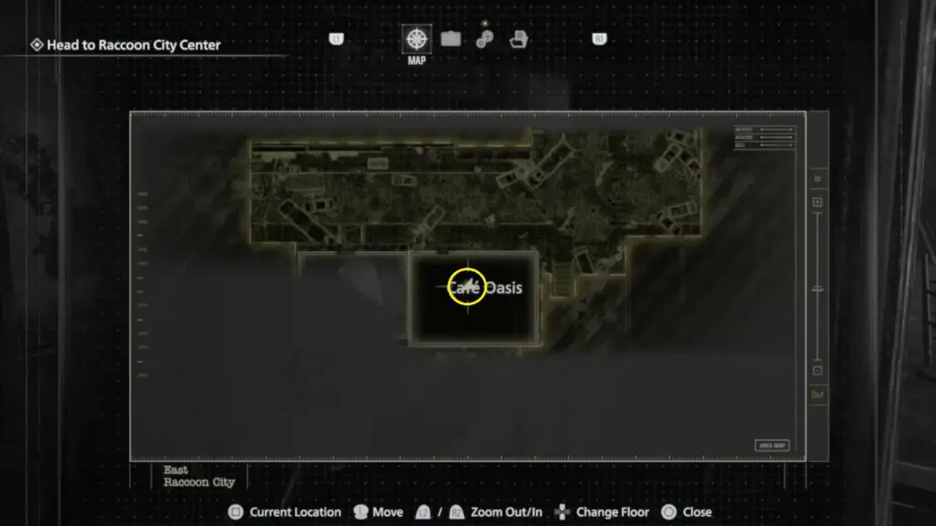 After you reach Raccoon City, go to Café Oasis. You will find it on the main street just before the Applegate Hotel. Go inside and check the area near the shelves. Mr. Raccoon is sitting right in front of one of them.
