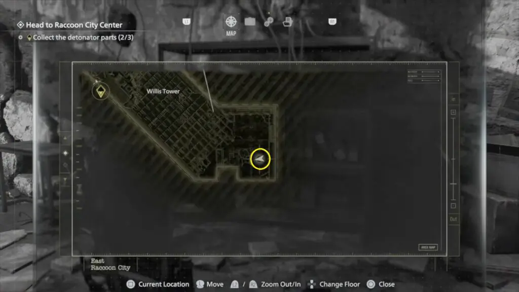 This Mr. Raccoon is inside Willis Tower. Use the zipline to reach the building. Once inside, go upstairs and turn right to enter a room with a sofa. Look at the shelf in front of the sofa to find Mr. Raccoon.