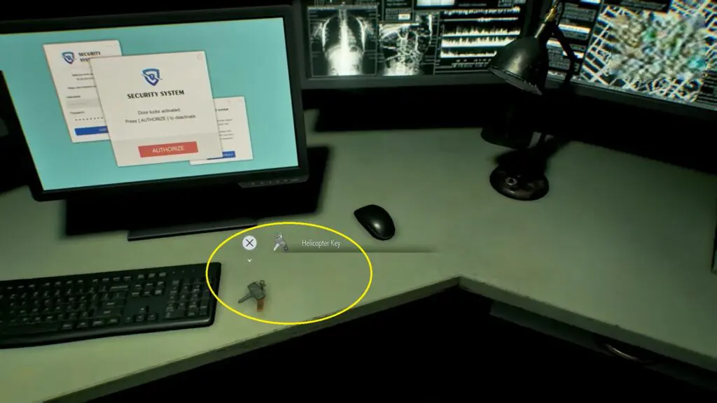 Inside the Private Lab, check the desk to find the Helicopter Key.