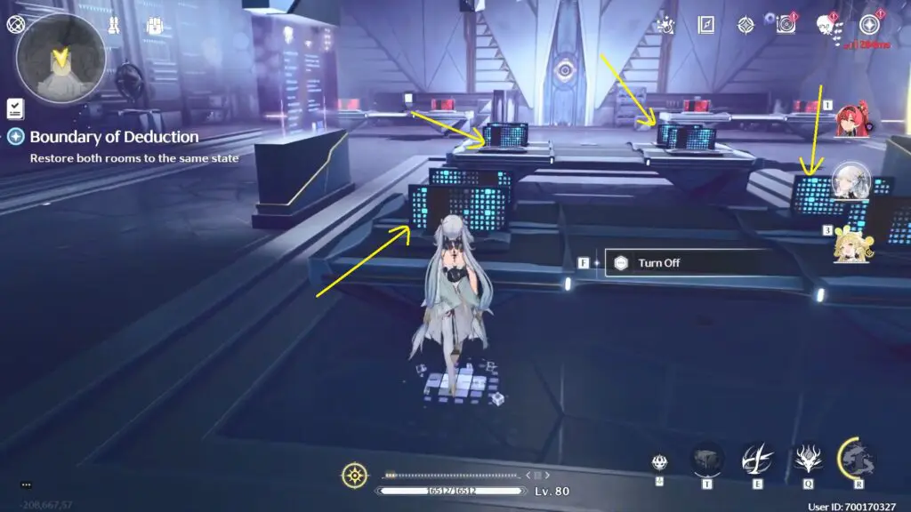 To synchronize both rooms, you’ll need to deactivate four computer screens in the original room. Return to the original room and refer to the image below for the specific screens that need to be turned off. Additionally, a Tacet Discord will spawn while you attempt to turn off the screens. Defeat it and then proceed to turn off the four screens. Also, some screens need multiple attempts to turn off.