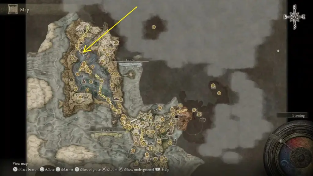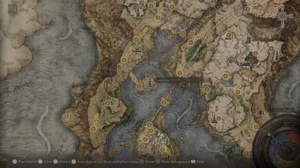 This guide shows how to solve the “Seek Three Wise Beasts” puzzle in Testu’s Rise tower in Elden Ring. After solving the puzzle, you will be able to get a Memory Stone. Testu’s Rise is on the north side of Liurnia at the location marked in the pictures below. It is east of the “Sorcerer’s Isle” Site of Grace