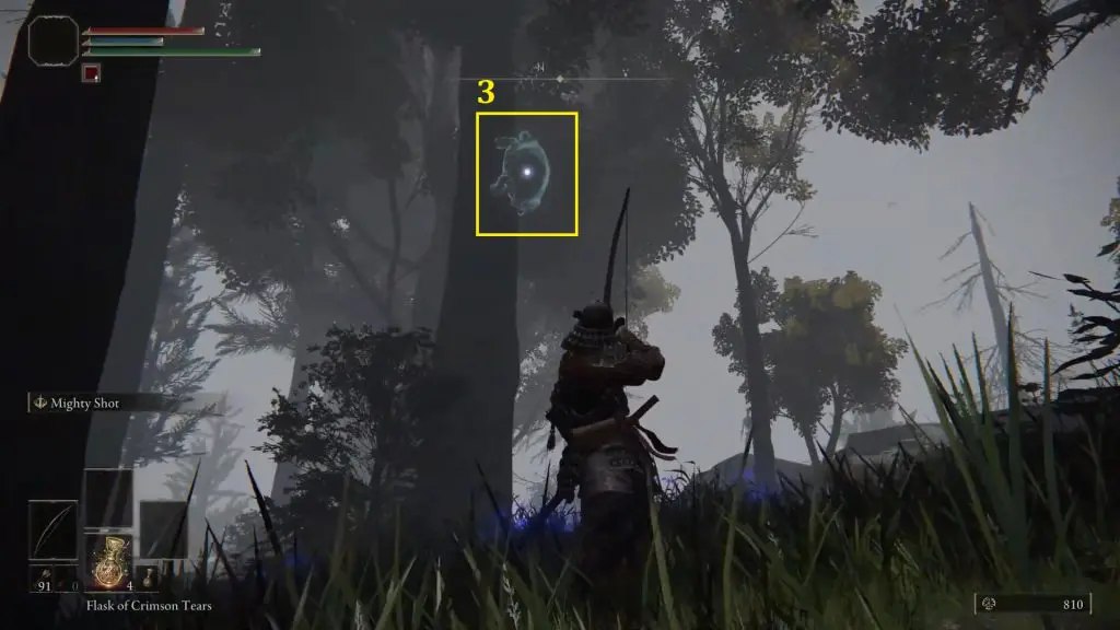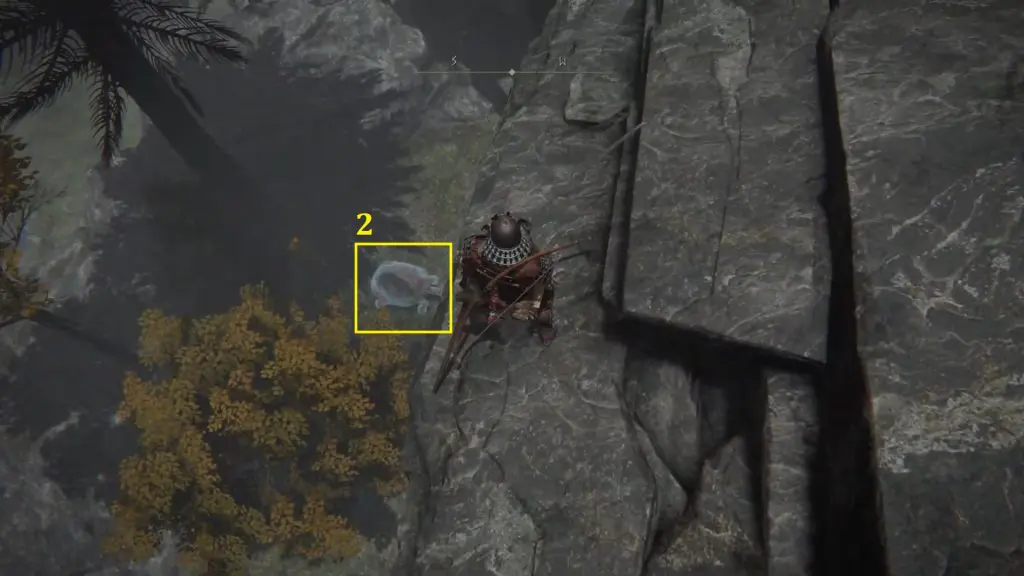 Go to the right side of the tower (South of the tower) to find the turtle below the cliff as shown in the picture below. Shoot the turtle with an arrow.