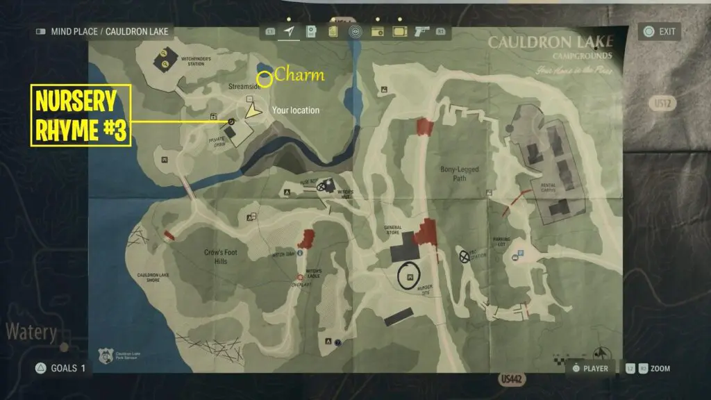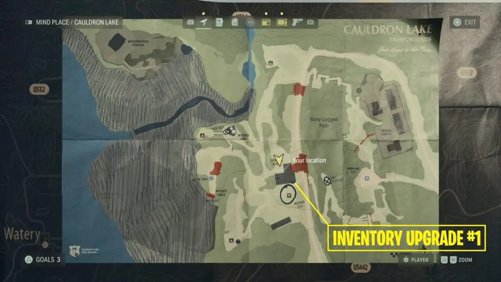You’ll find the Alan Wake 2 streamside stash near a table and some camping gear as shown in map.