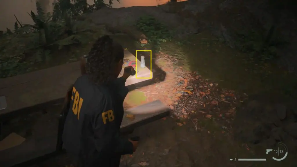 To unlock the lock, you must first find the key for the stash. Shine your flashlight around the area, and as you do, keep an eye out for some yellow arrows that will glow in the light of your torch. Follow these yellow arrows, and they will lead you to a specific place where you can discover the key for the stash by the streamside.