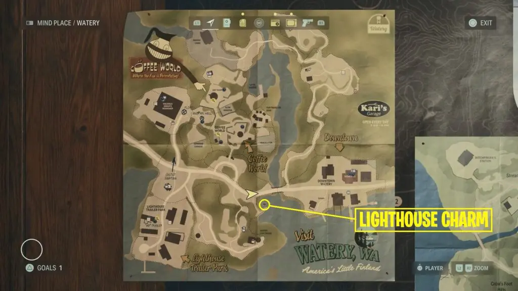 Head to the location marked on the map and onto the beach area to find charm on a rock.
