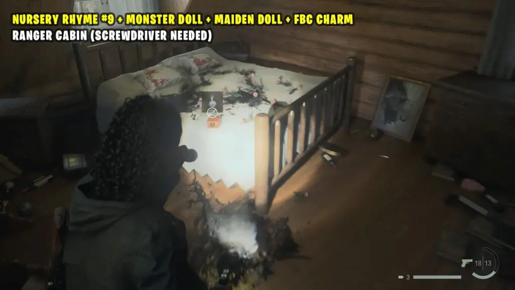 Return upstairs to the Ranger Cabin to discover the charm resting on the bed.