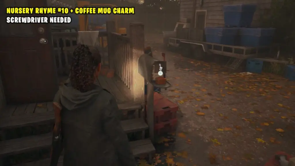 you can find a Cult Stash close to the Huotari Well and along the path to the Espresso Express. On top of the Cult Stash, there’s a note with the clue “What’s hidden behind the smile?” to help you find the key.