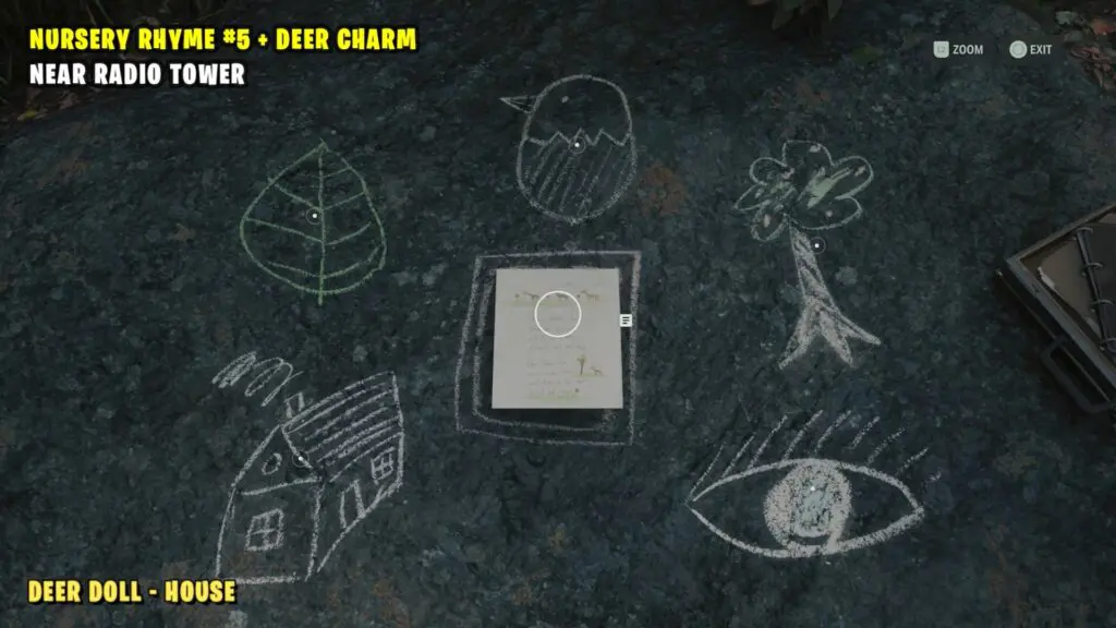 To solve the puzzle at the Radio Tower nursery rhyme location, make sure to acquire the Deer Doll. You can find the Deer Doll at the shooting tower.
