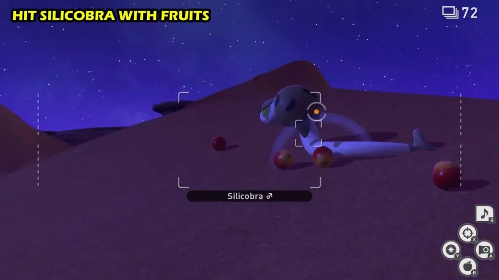 - It will dig into the sand and will reappear just a little ahead to your left. This time most of its body will be inside the sand & only its snout will be visible (scan the area to spot it easily). Hit the Silicobra with a fluffruit and it will again dig into the sand.