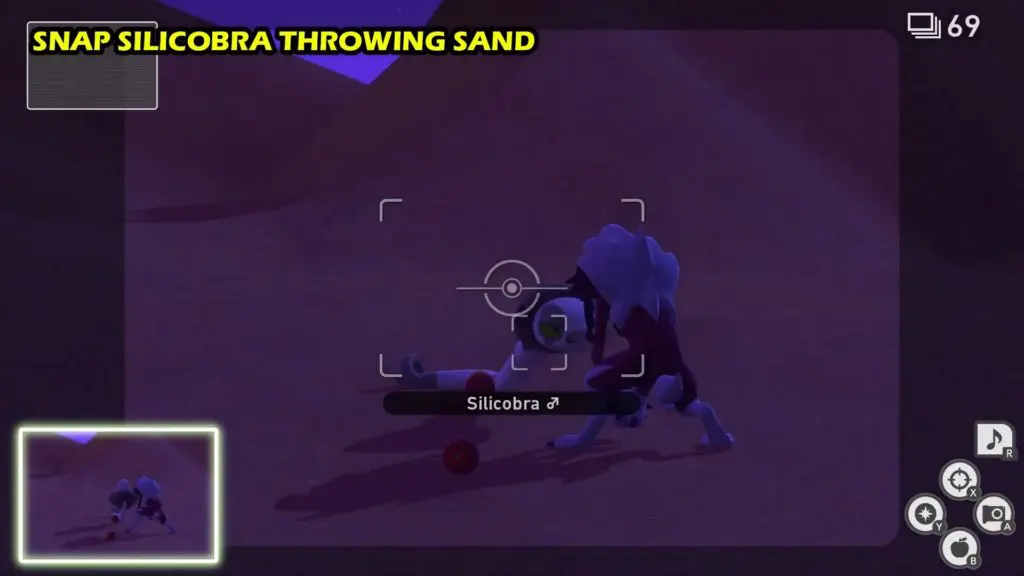 - The Silicobra will emerge from the sand and will toss sand on Lycanroc’s face. Snap this moment to fulfill the request.