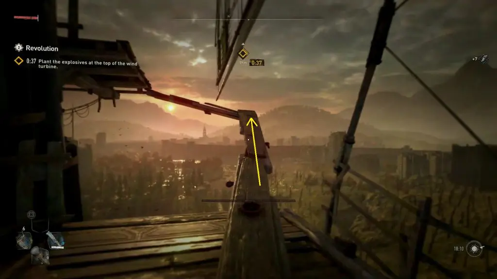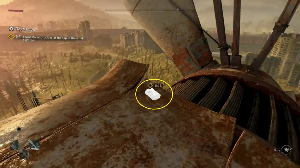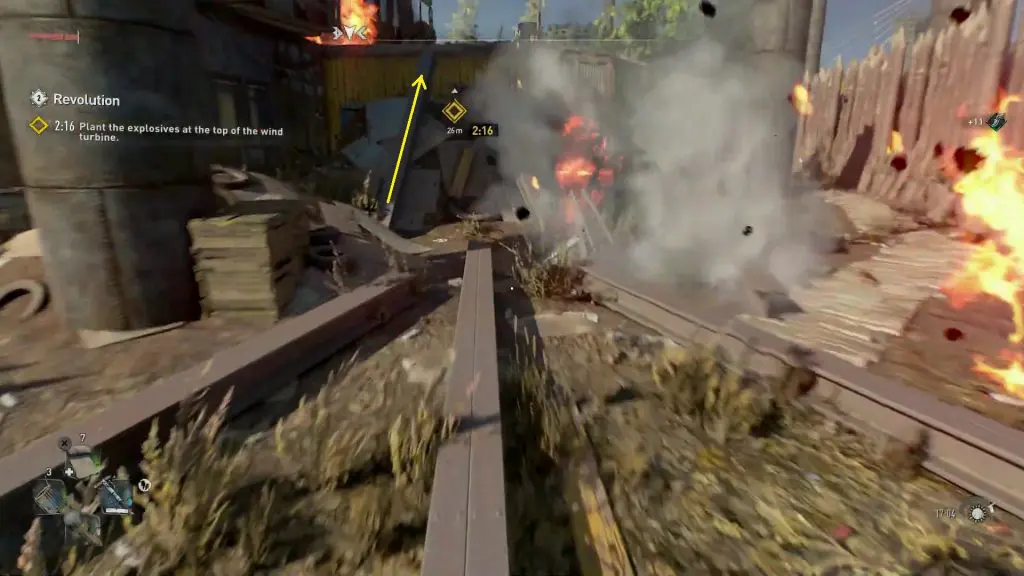 Revolution: Plant the explosive at the top of the the Wind Turbine