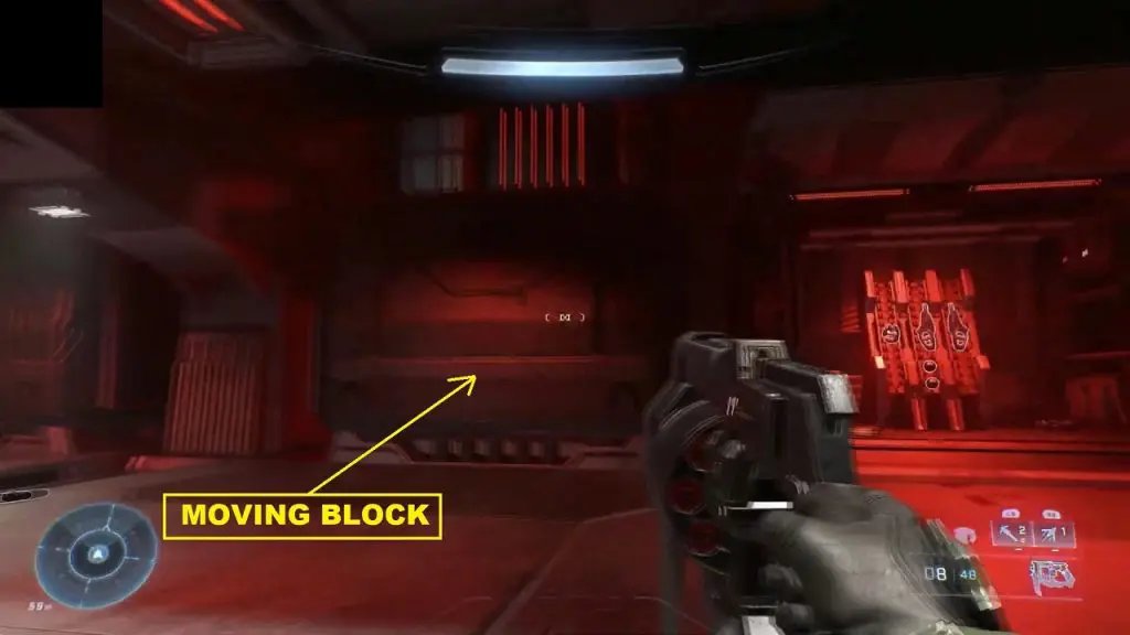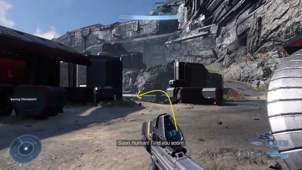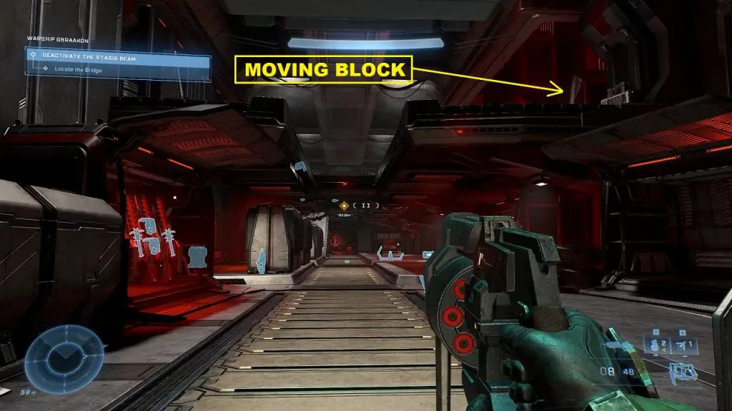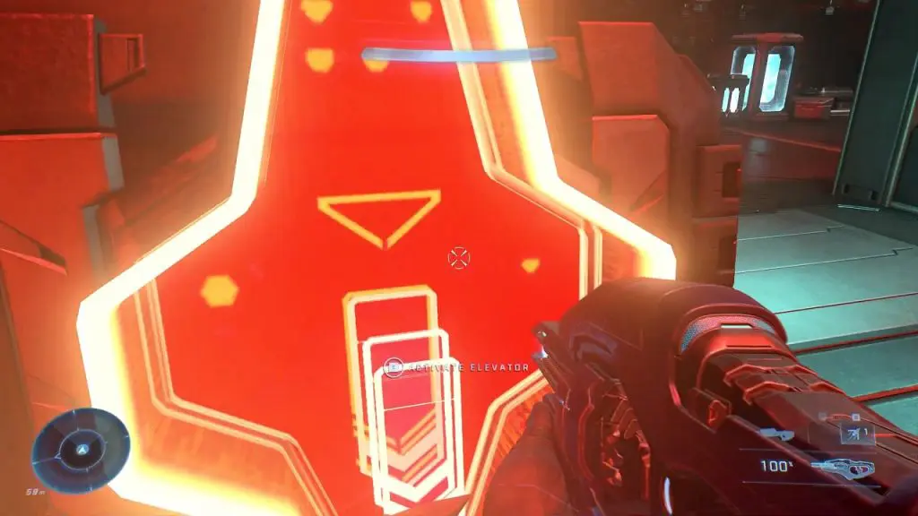 During the ‘Follow the Signal’ objective, you will have a cutscene with Cortana. After that, ascend on the blue platform as shown below. Then continue ahead in the blue corridor.