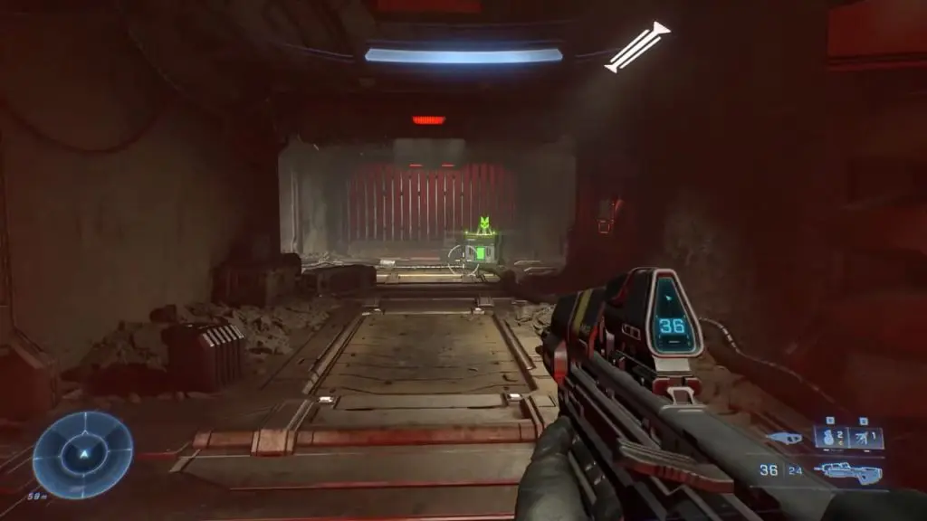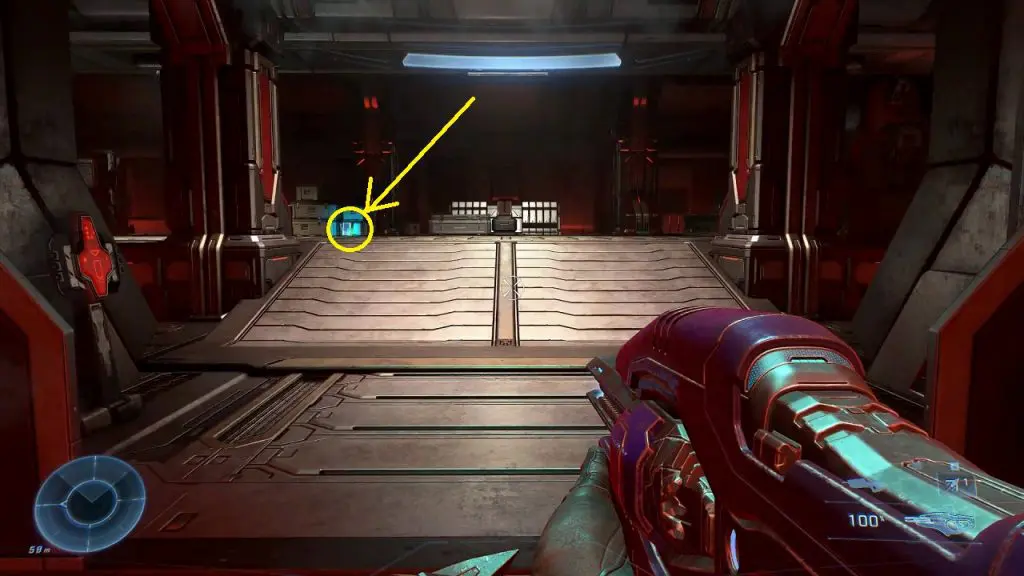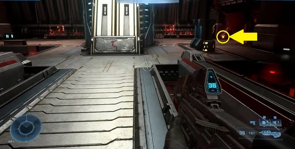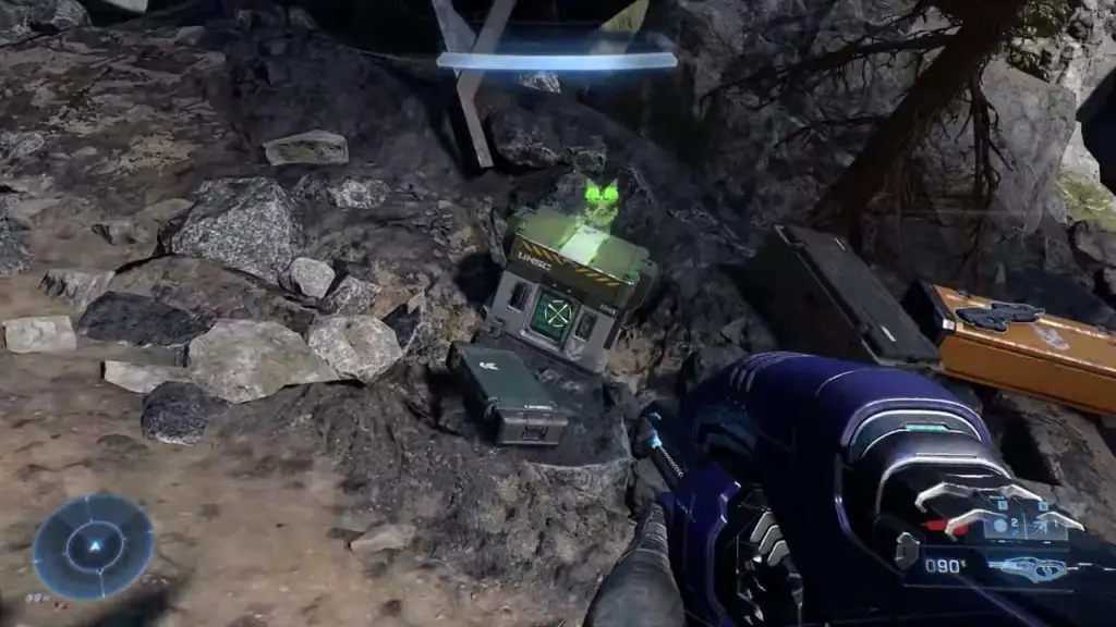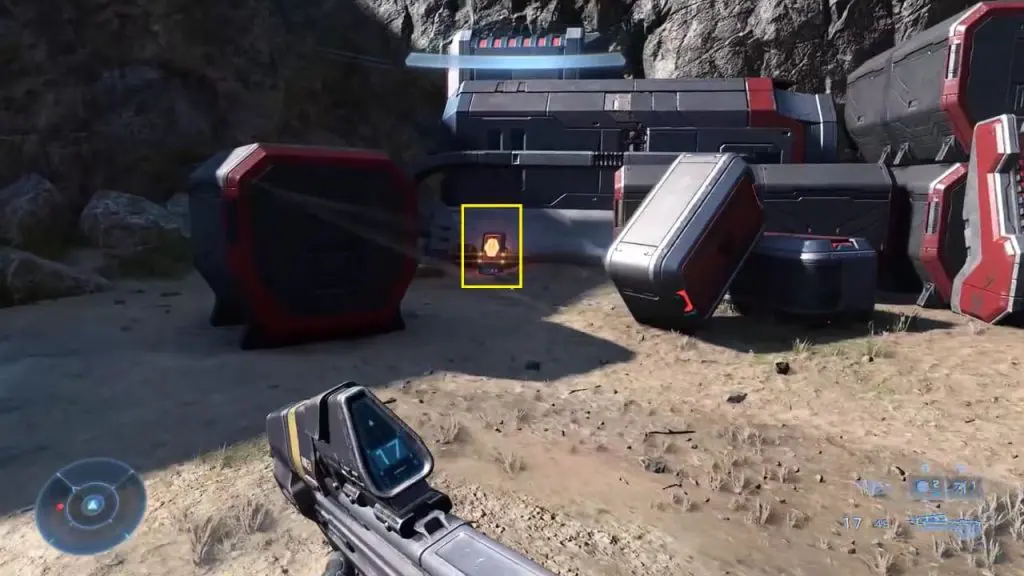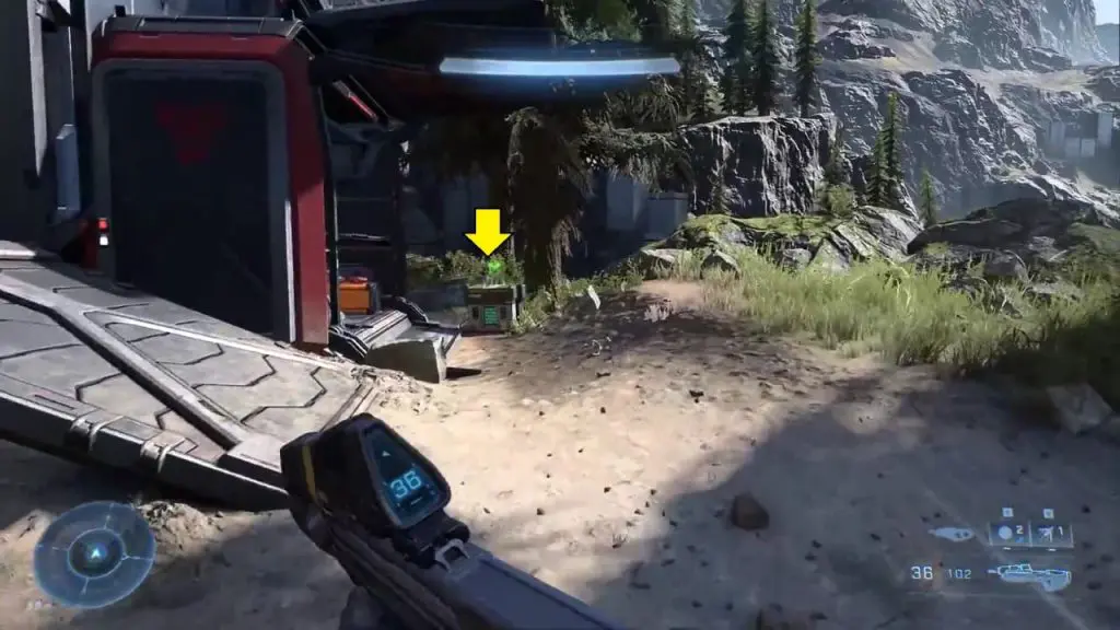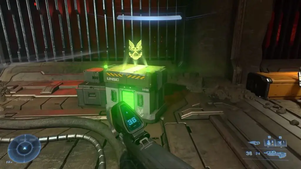 As the third mission ‘Outpost Tremonius‘ starts in Halo Infinite, you come up using the elevator. As you head down the hallway, you can find the flashing green UNSC box containing a Spartan Core.