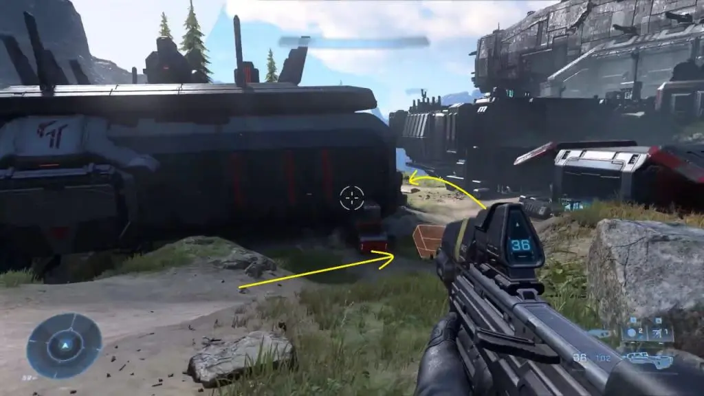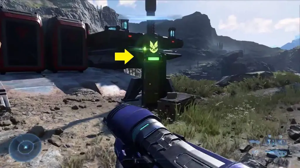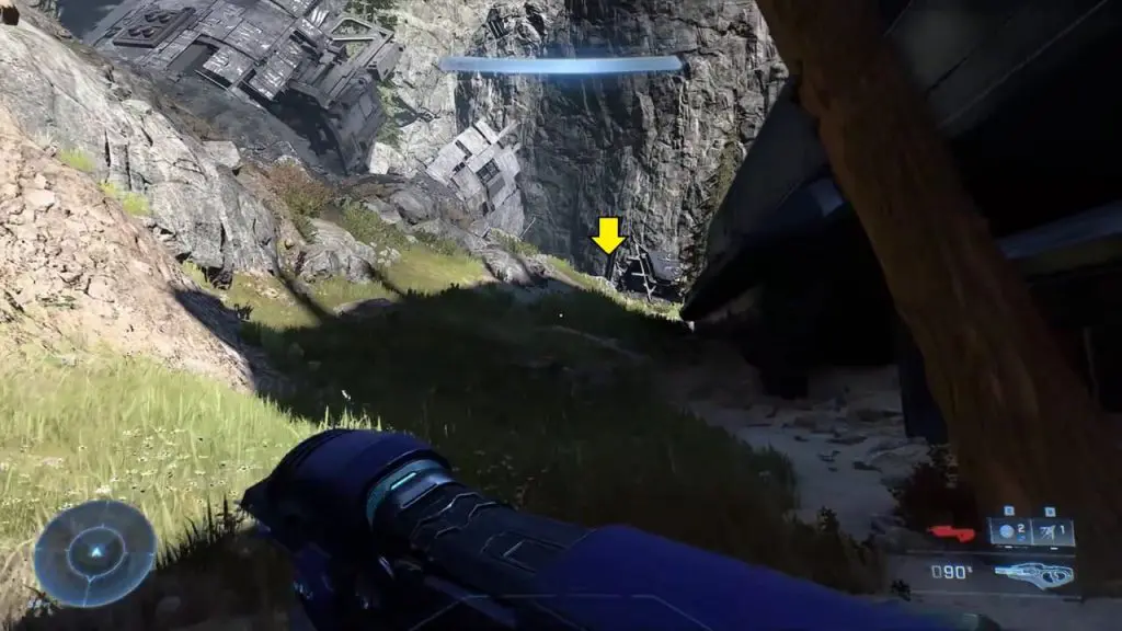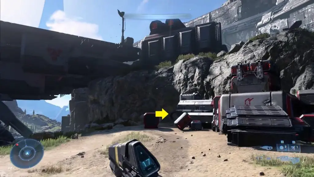 The final collectible is located near the landing pad. Head up the hill on the far right side as shown in the image. Near the landing pad, look for a green armor locker. Interact with the locker to collect Mjolnir Armor Locker.