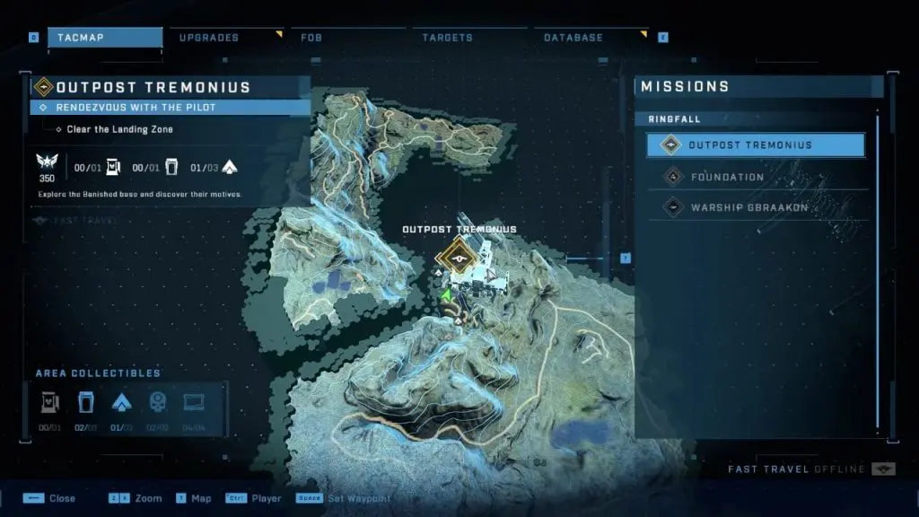 This guide shows the location of all the collectibles (1xMjolnir Locker, 3xBanished Audio Log, 3xSpartan Core, 2xSkull, 4xUNSC Audio Log) in the Ringfall area of Halo Infinite. Ringfall consists of three missions that encompass three regions (Warship Gbraakon, Foundation, Outpost Tremonius). If you miss a mission collectible and complete the mission, then you won’t be able to get the collectible without restarting the campaign. 1 UNSC Audio Log will be unlocked automatically during the missions Warship Gbraakon & Foundation each. Collectibles that unlock automatically during the mission have not been shown in this guide.