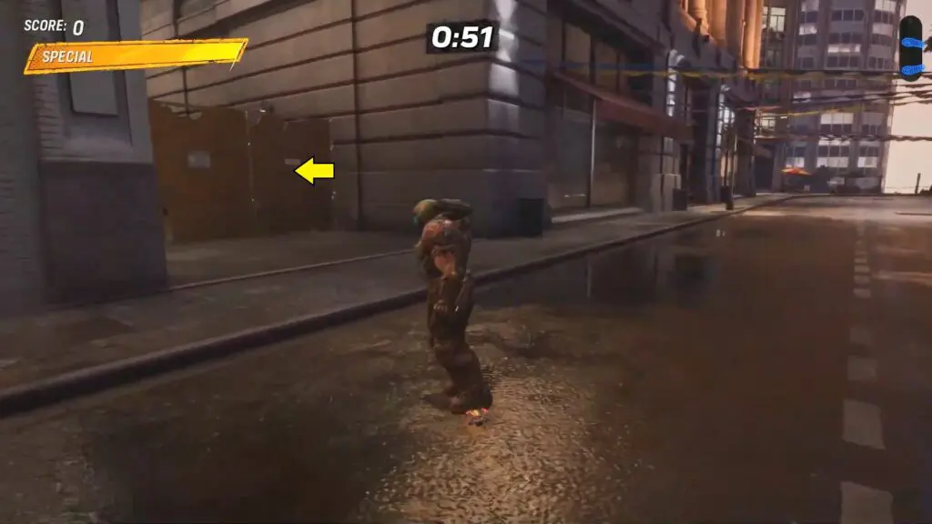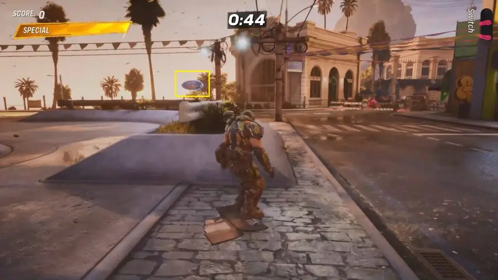To find it, start by going down the ramp at the start of the level and proceeding to the left side of the skate park.