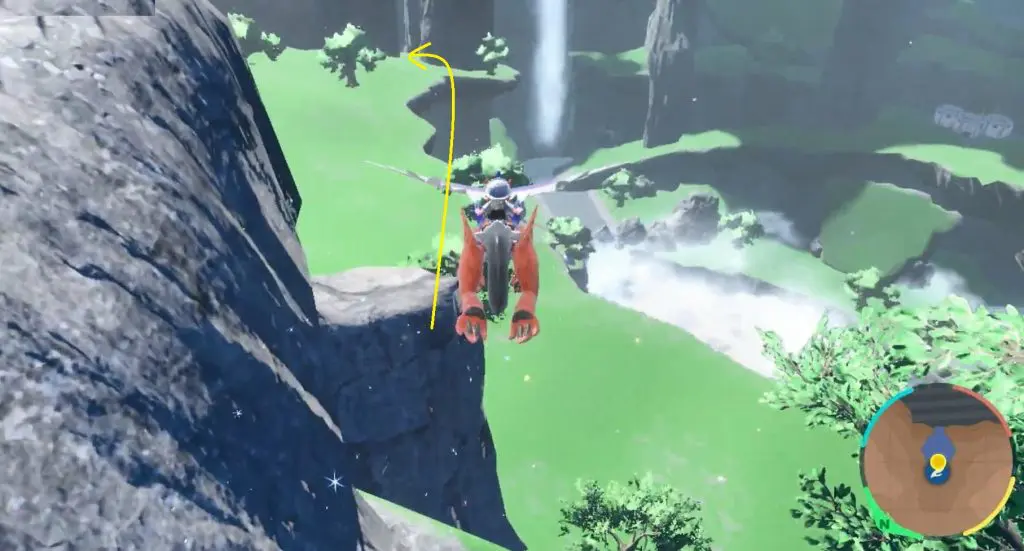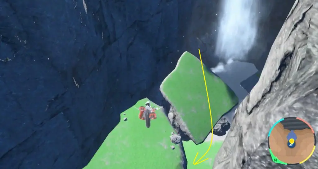 At Research Station 1, jump and glide in the direction of a waterfall