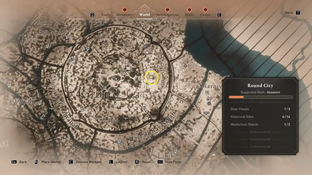 This article will guide you in locating the Gear Chest in the Round City District in Assassin’s Creed Mirage. Gear Chest unlocks new Weapons, Outfits, and Upgrade Schematics. Also don’t forget that there are 3 chests per set.