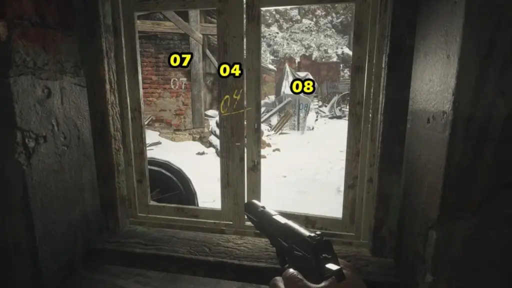 - To find the combination look outside the window and line up the numbers on the wall, window frame, and fabric to get the combination to the lock.
