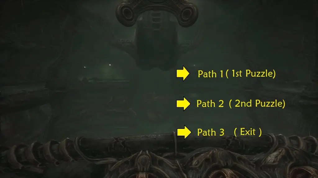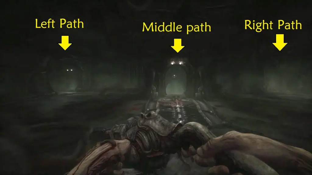 Return to the previous room and interact with the terminal once more to open a path up in the balcony. Finally, retrace your steps back to the beginning. Next, take the middle path( or right path, as both will take you to the same location).