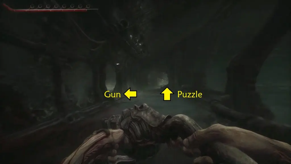 After that, go to the left path and unlock the locked door. Enter inside and use the pneumatic pistol to open the path by interacting with the terminal. You can use your pneumatic gun to kill or stun the monster here.