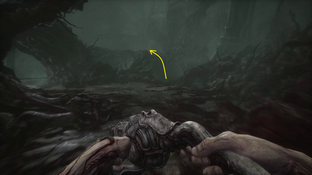 After interacting with the switch mentioned before, turn around and take the path on the left side as shown in the picture below.