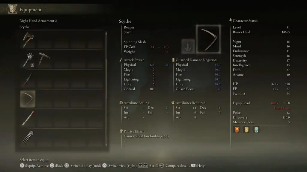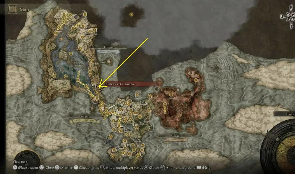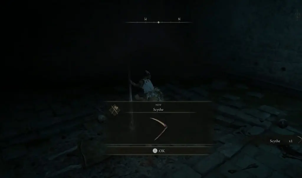 This guide shows how to get Scythe in Elden Ring. You will get Scythe in the Cliffbottom Catacombs dungeon. Click here for the complete walkthrough of Cliffbottom Catacombs.
