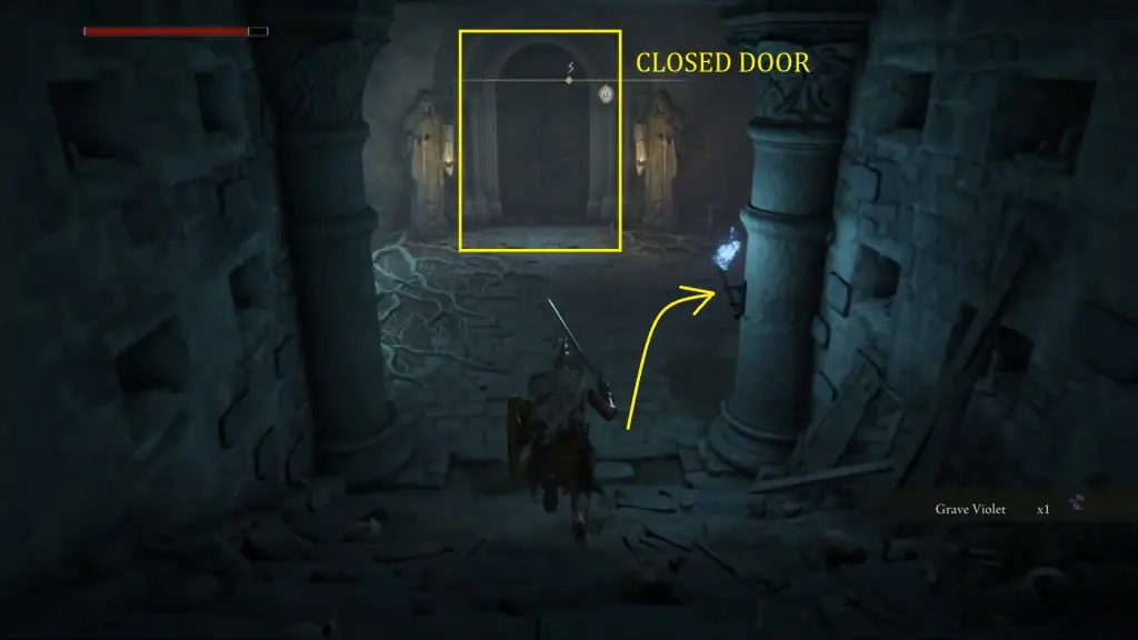 After entering the catacomb, take the elevator down. Then proceed ahead in a linear path to reach the door to the boss lair. The door will be closed now. Take the path to the right.