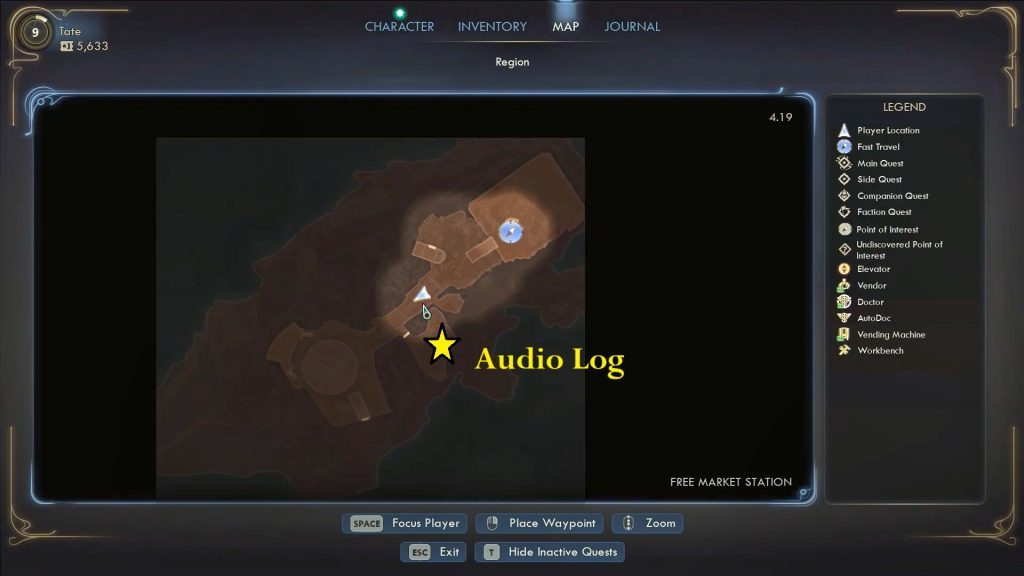 Make sure you have either the Brawny Trait or Sneak 5, or you won’t be able to retrieve the ship’s buried audio log. Head to the Rift Anomaly area in Free Market Station and crouch through the opening to reach the wreckage of the ACS Free Market. Examine the smaller debris and pass a Brawny or Sneak 5 check to locate the buried audio log titled Another Sunk-Cost Fallacy (1). Listen to it to learn what happened during the ship’s final moments.