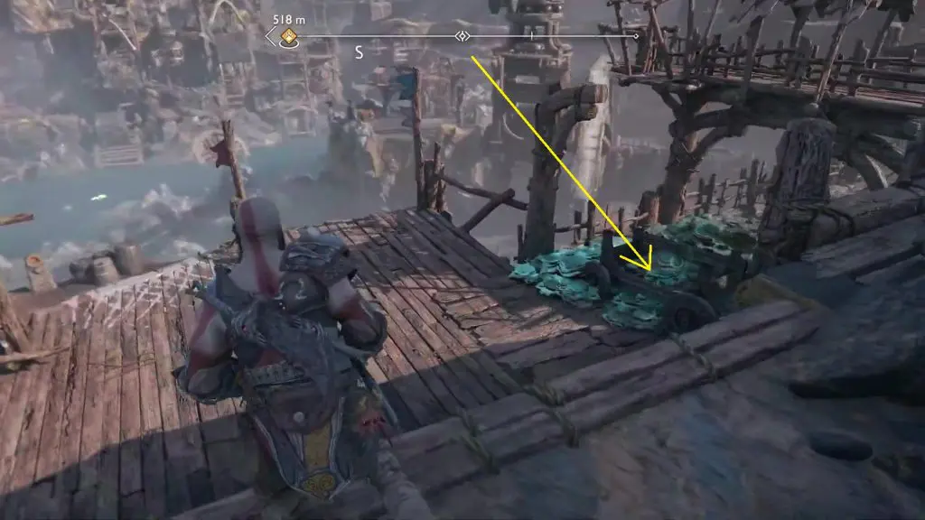 After landing on the platform, turn left and send Atreus up the platform as shown in the picture below.