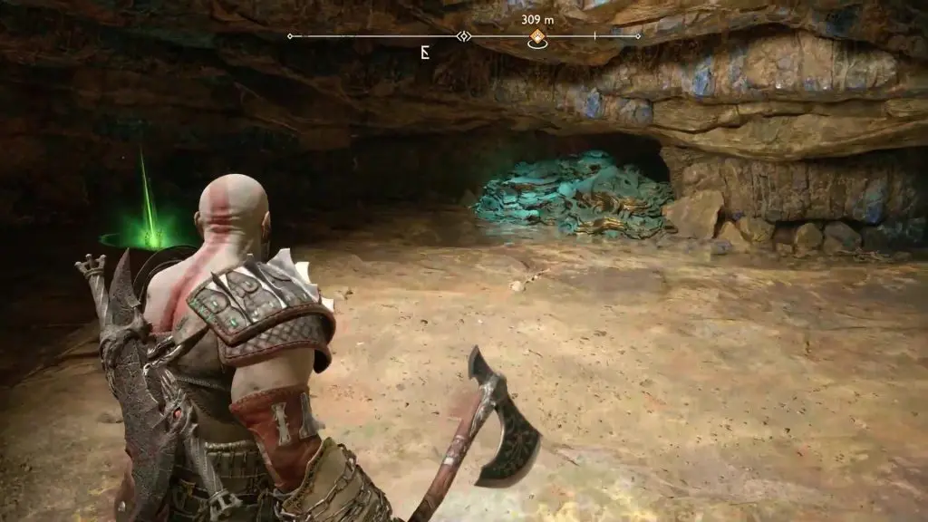 Go through the door and in the next room, direct Atreus to destroy the sound stone, revealing a narrow path. Squeeze through the narrow gap in the wall. Continue straight ahead and then take the path going up on the left side to reach the next water puzzle. On the right side of the puzzle area, there is another side area, but you need not go there right now as you won’t be able to solve the puzzle there at this stage of the game.