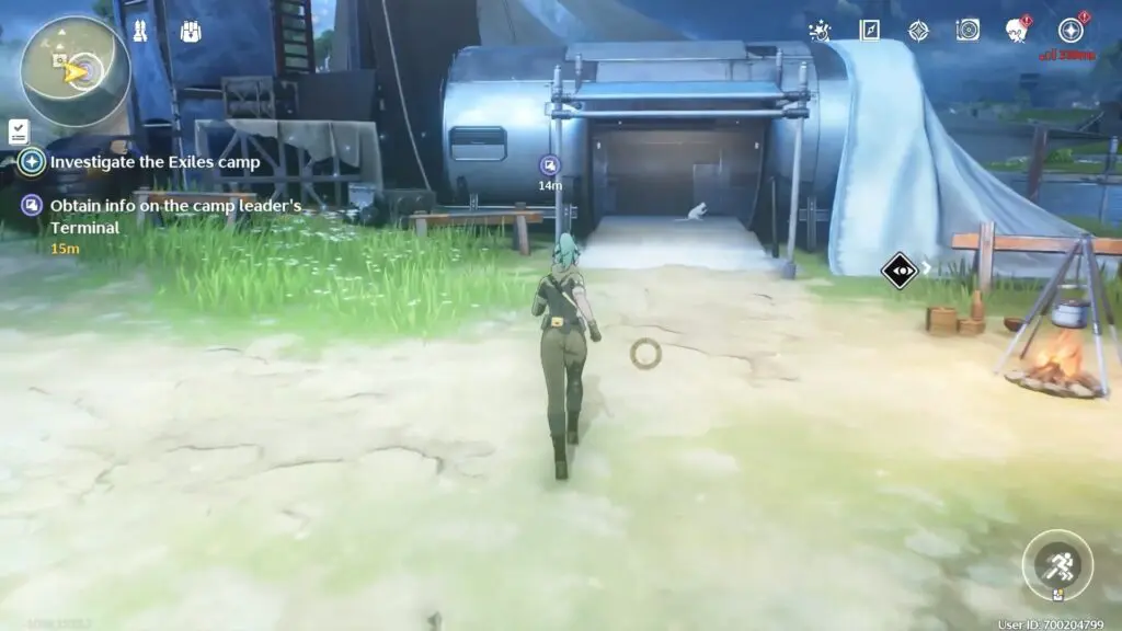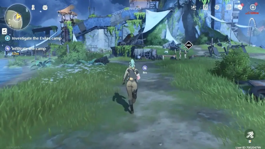 Proceed into the camp. Be extra careful and keep your distance from the dogs in the area, as they could quickly reveal your cover. Speak with the guard, but they won’t let you enter the camp.