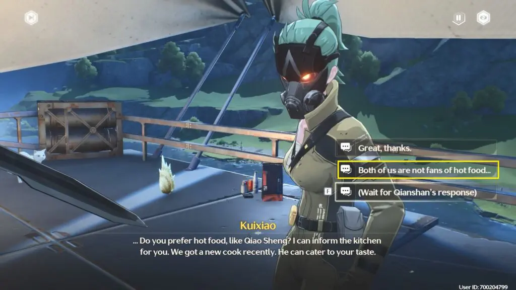 Kuixiao will ask if you want a hot meal to check if you are Qiao Yang. You can reply with, “Both of us are not fans of hot food“