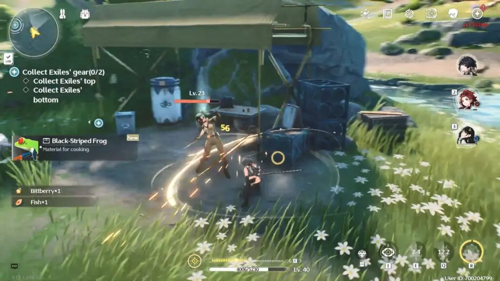 Follow the quest marker to the island in Lake Deerslumber. Defeat the Exiles and collect Exile’s Top and Exile’s Bottom.